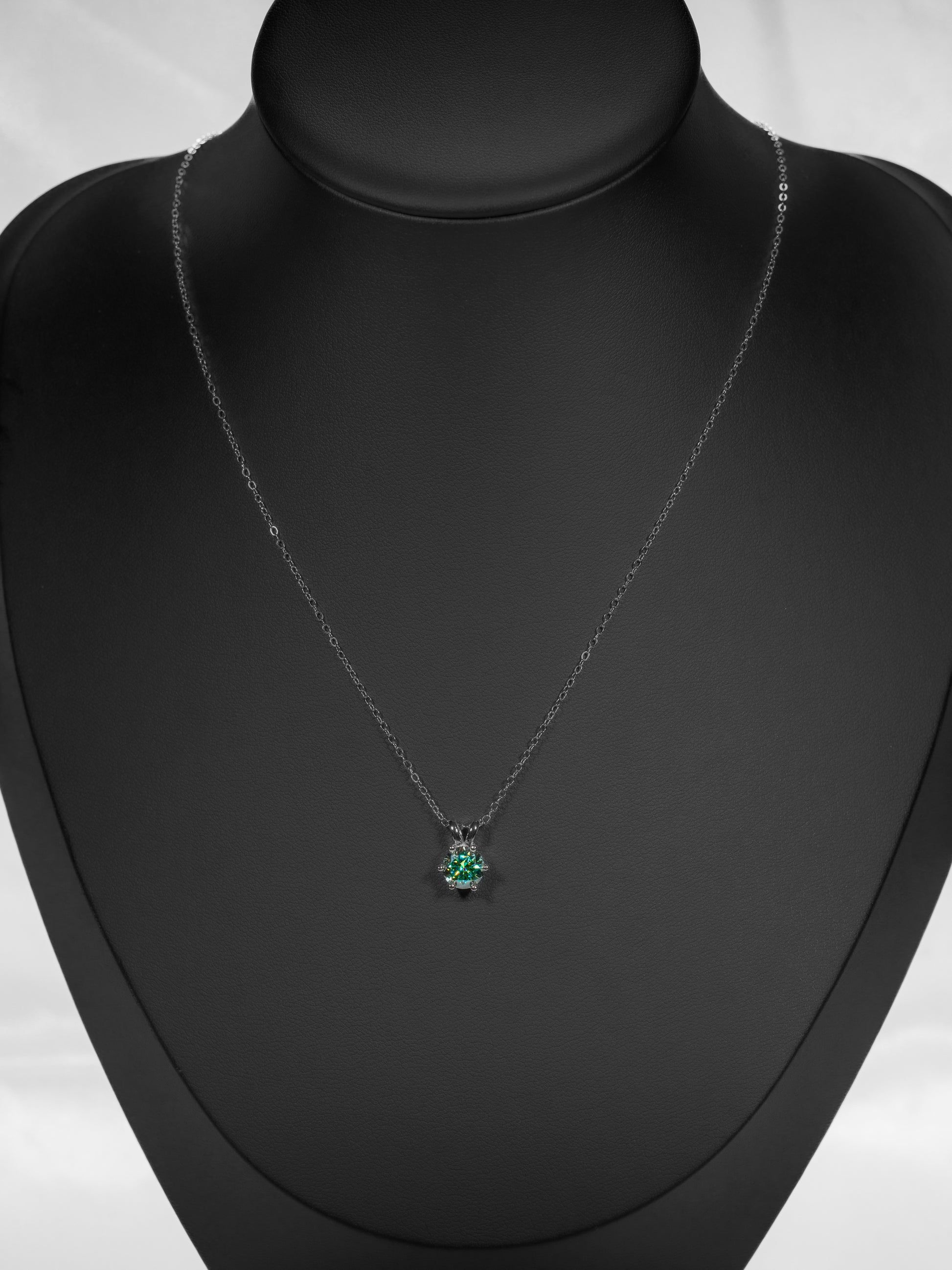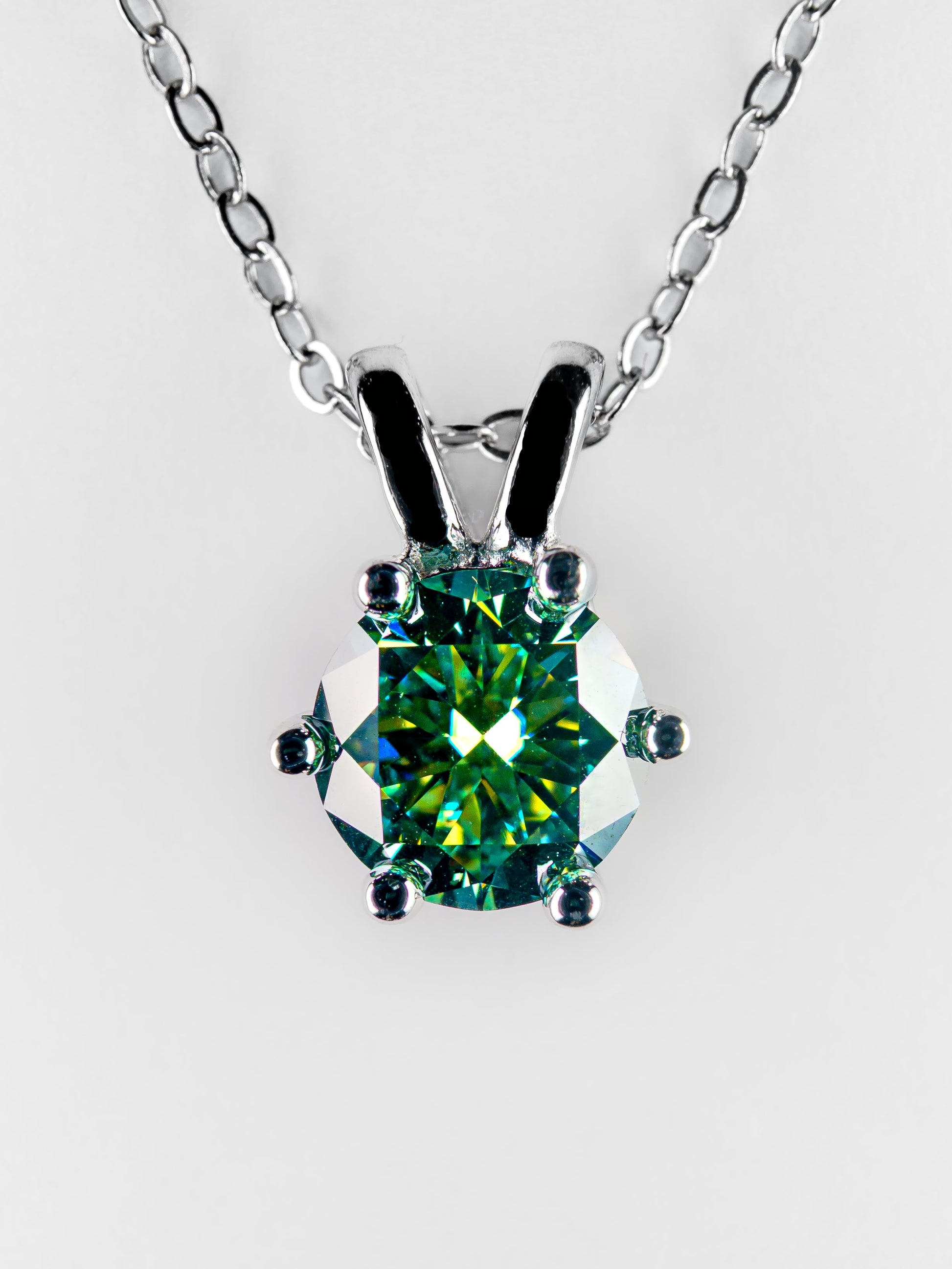 A striking blend of elegance and versatility, this pendant features a brilliant 1 carat lab-grown green moissanite, set in an hexagonal silver-plated mount. Its modern design and vibrant color make it the perfect accessory to elevate your style. A timeless piece that adds a touch of sophistication to any look, day or night.