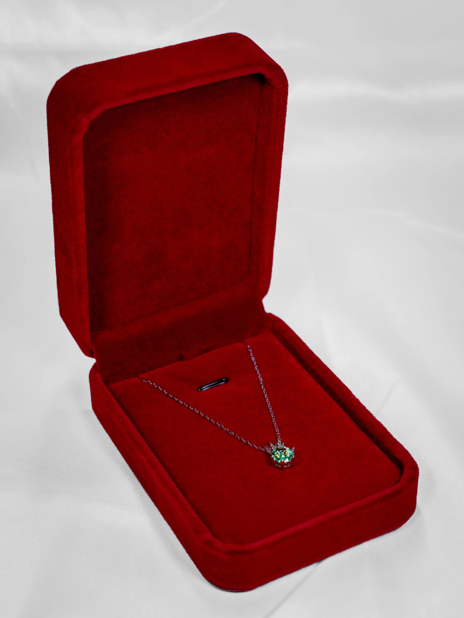 All our pendants and earrings are shipped with an elegant red velvet box to securely store your piece of jewelry.