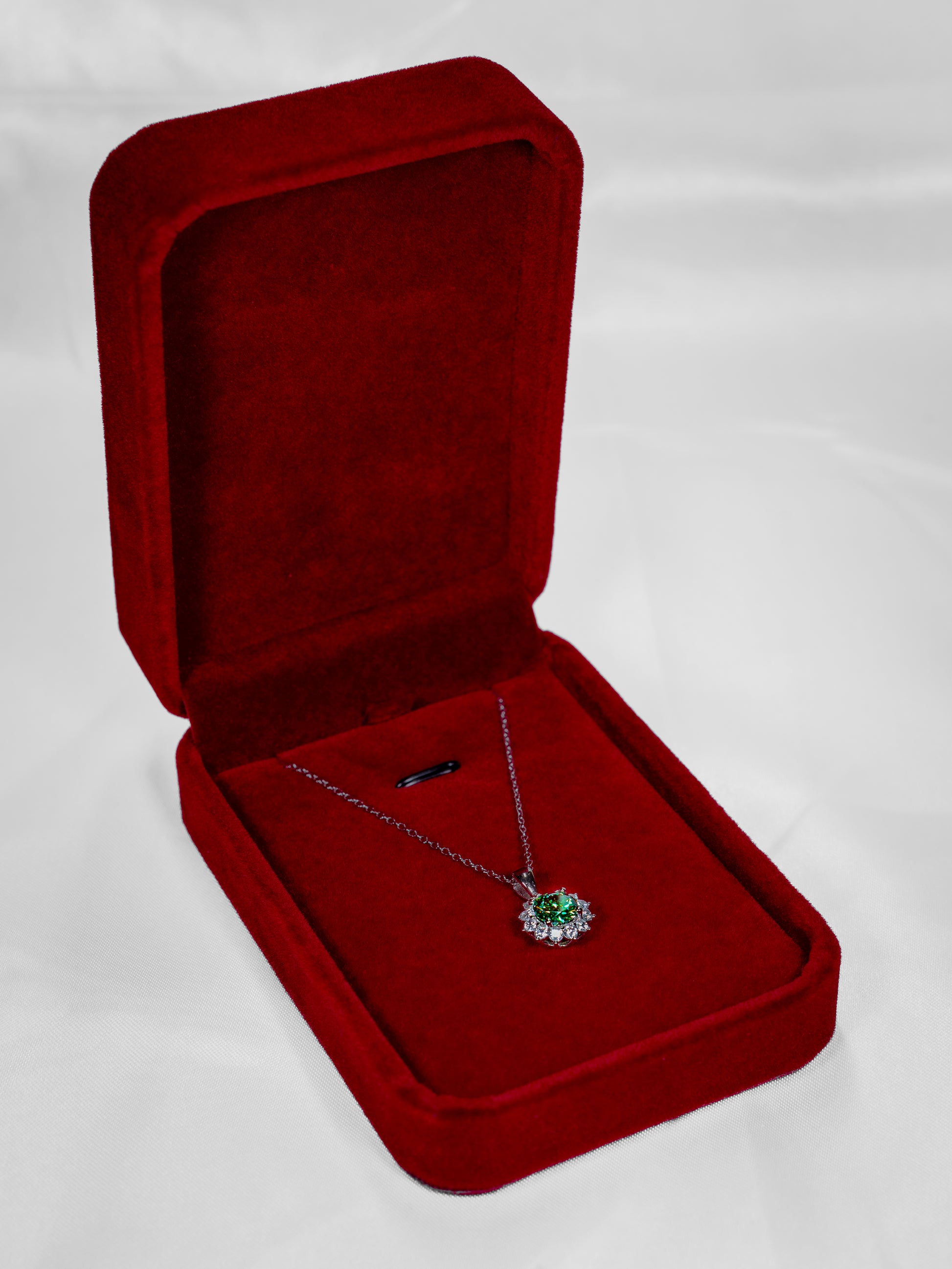 All our pendants and earrings are shipped with an elegant red velvet box to securely store your piece of jewelry.