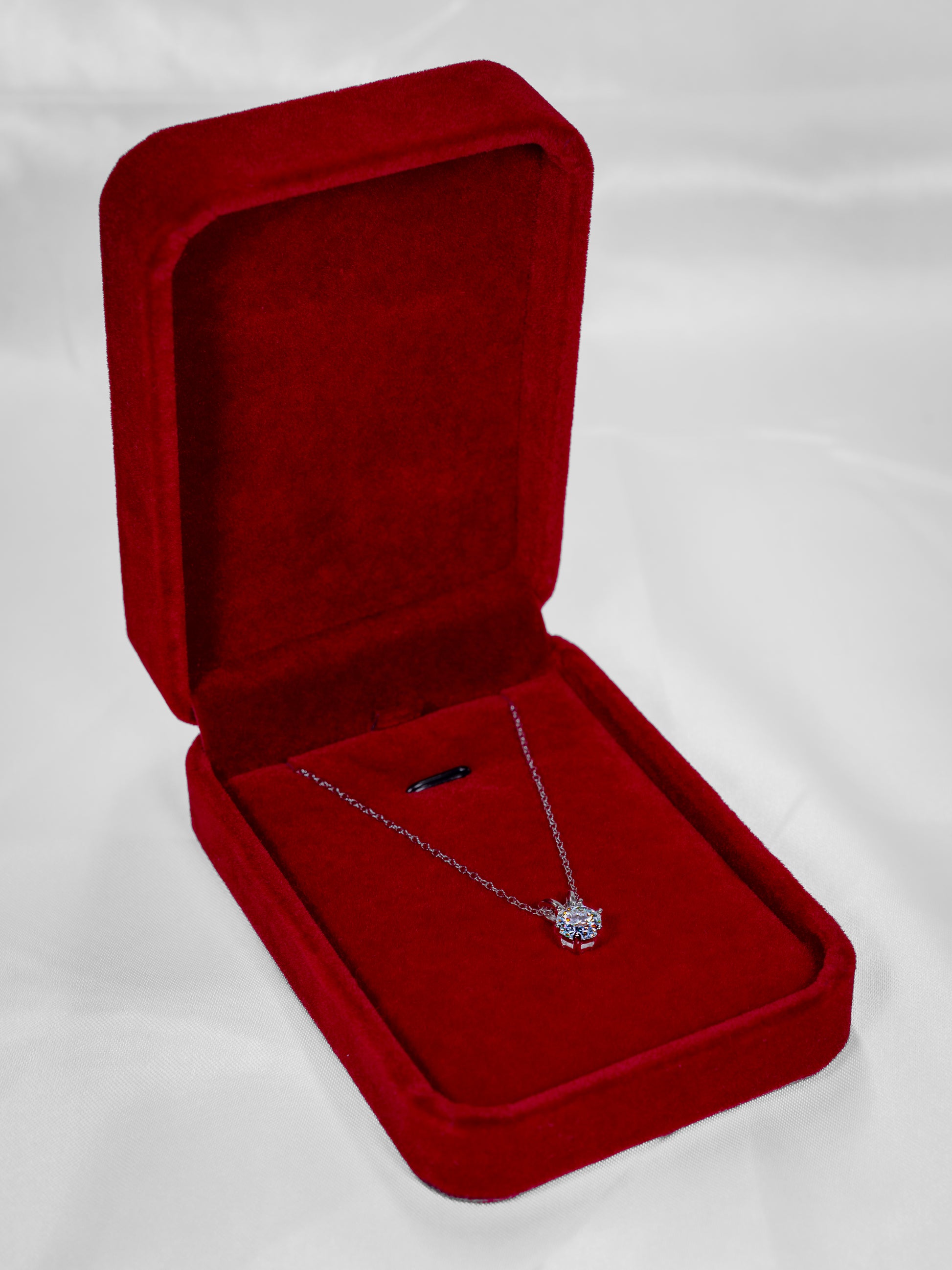 All our pendants and earrings are shipped with an elegant red velvet box to securely store your piece of jewelry.